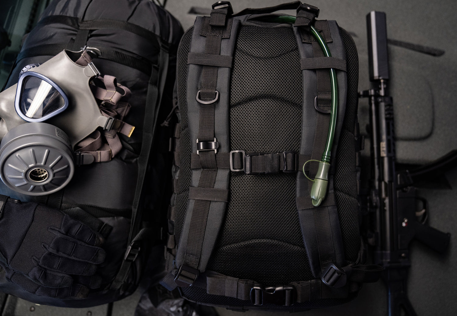 Instead, it features a full MOLLE webbing system on both sides, letting you attach modular pouches for bottles, tools, or extra gear.